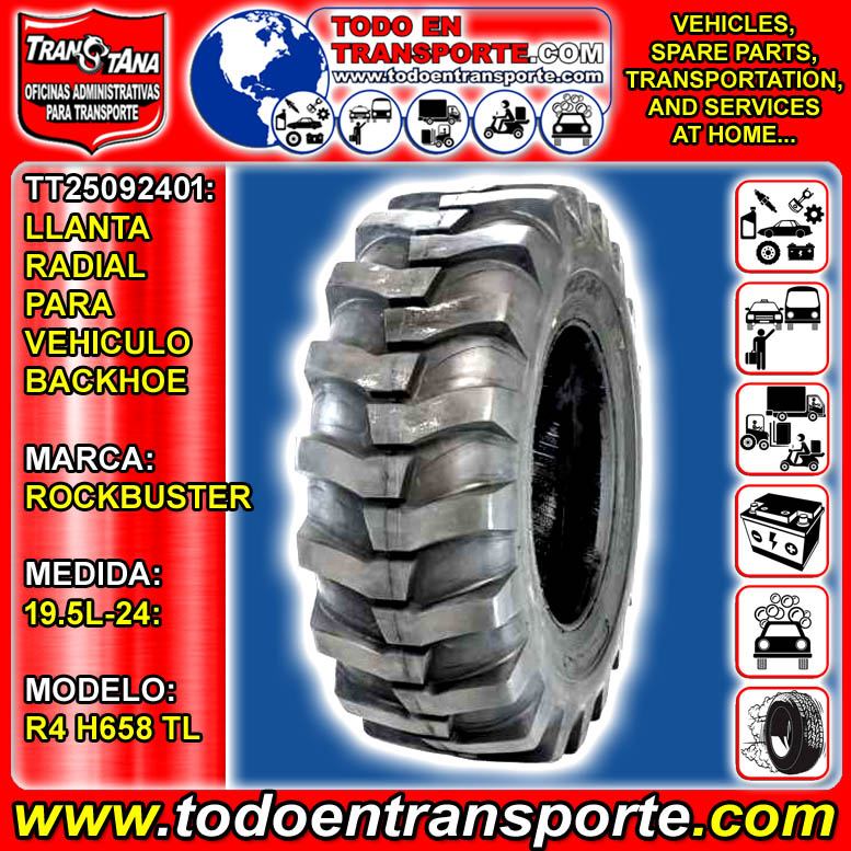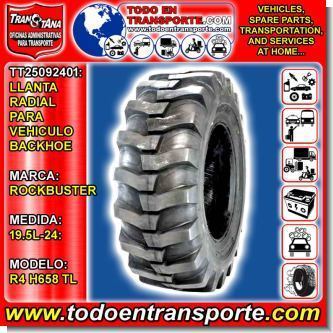 Este producto LLANTA RADIAL PARA VEHICULO BACKHOE MARCA ROCKBUSTER MEDIDA 19.5L-24 MODELO R4 H658 TL y muchos mas estan disponibles al por mayor y al detalle en TODOENTRANSPORTE. Pregunta por el codigo TT25092401. Aprovecha grandiosas ofertas todos los dias!