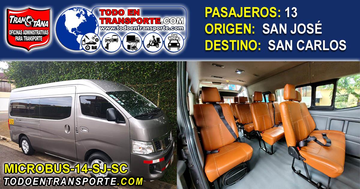 SERVICIO DE TRANSPORTE CON MICROBUS DE 14 PASAJEROS, DESDE SAN JOSE HASTA FRONTERA NORTE SAN CARLOS, COSTA RICA