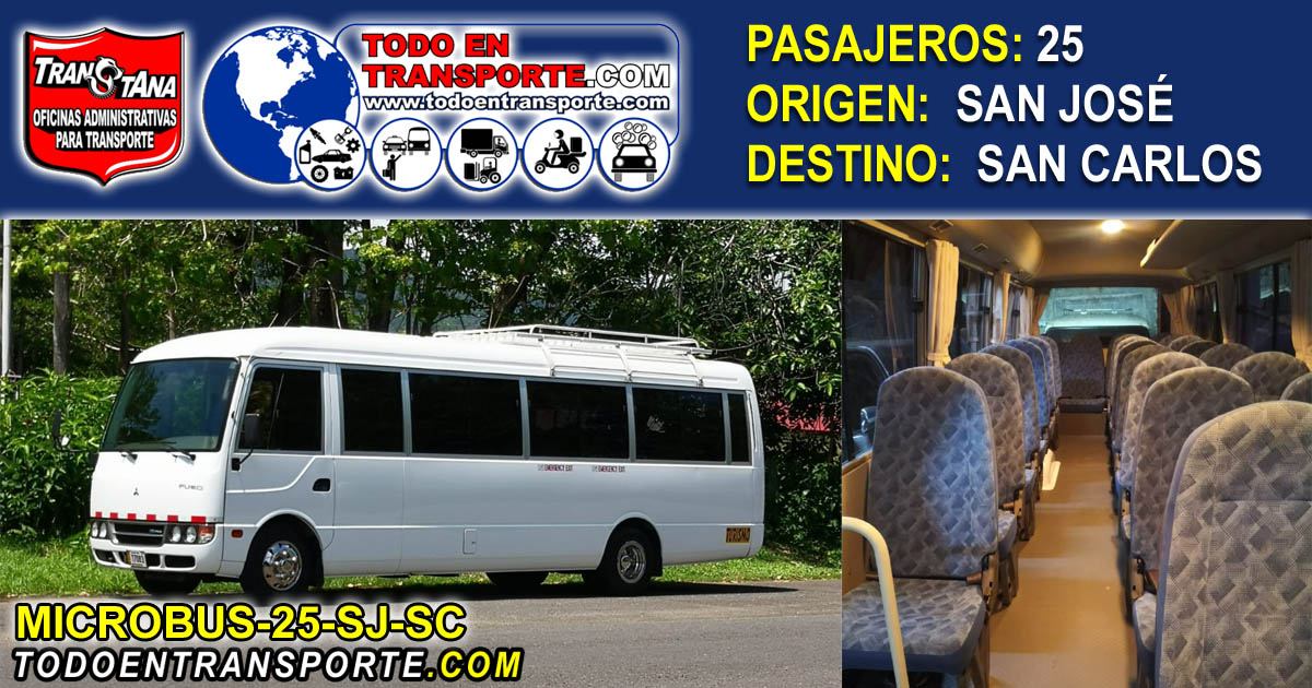 SERVICIO DE TRANSPORTE CON MICROBUS DE 25 PASAJEROS, DESDE SAN JOSE HASTA FRONTERA NORTE SAN CARLOS, COSTA RICA